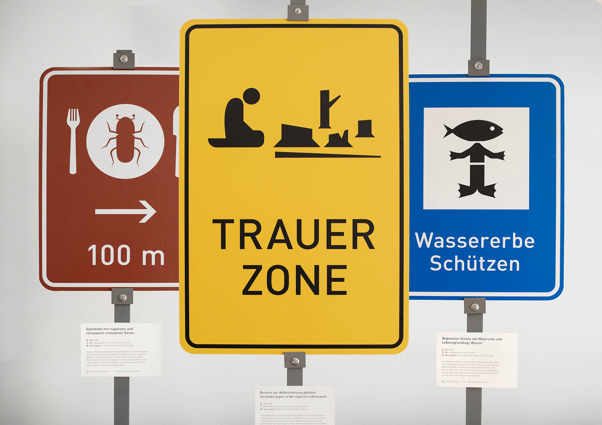 Dieser Workshop richtete sich an Jugendliche und junge Erwachsene in ländlichen Regionen Thüringens. Gemeinsam mit Radical Norms und Bettina Schwalm, die das Projekt „Signs of Change“ entwickelt haben, gestalteten wir Schilder, die auf für junge Menschen relevante Herausforderungen aufmerksam machten – etwa das Verschwinden der lokalen Waldlandschaft durch invasive Arten, das Thema Wasser, der Mangel an öffentlichem Nahverkehr, an psychosozialer Versorgung und an kulturellen Begegnungsräumen.