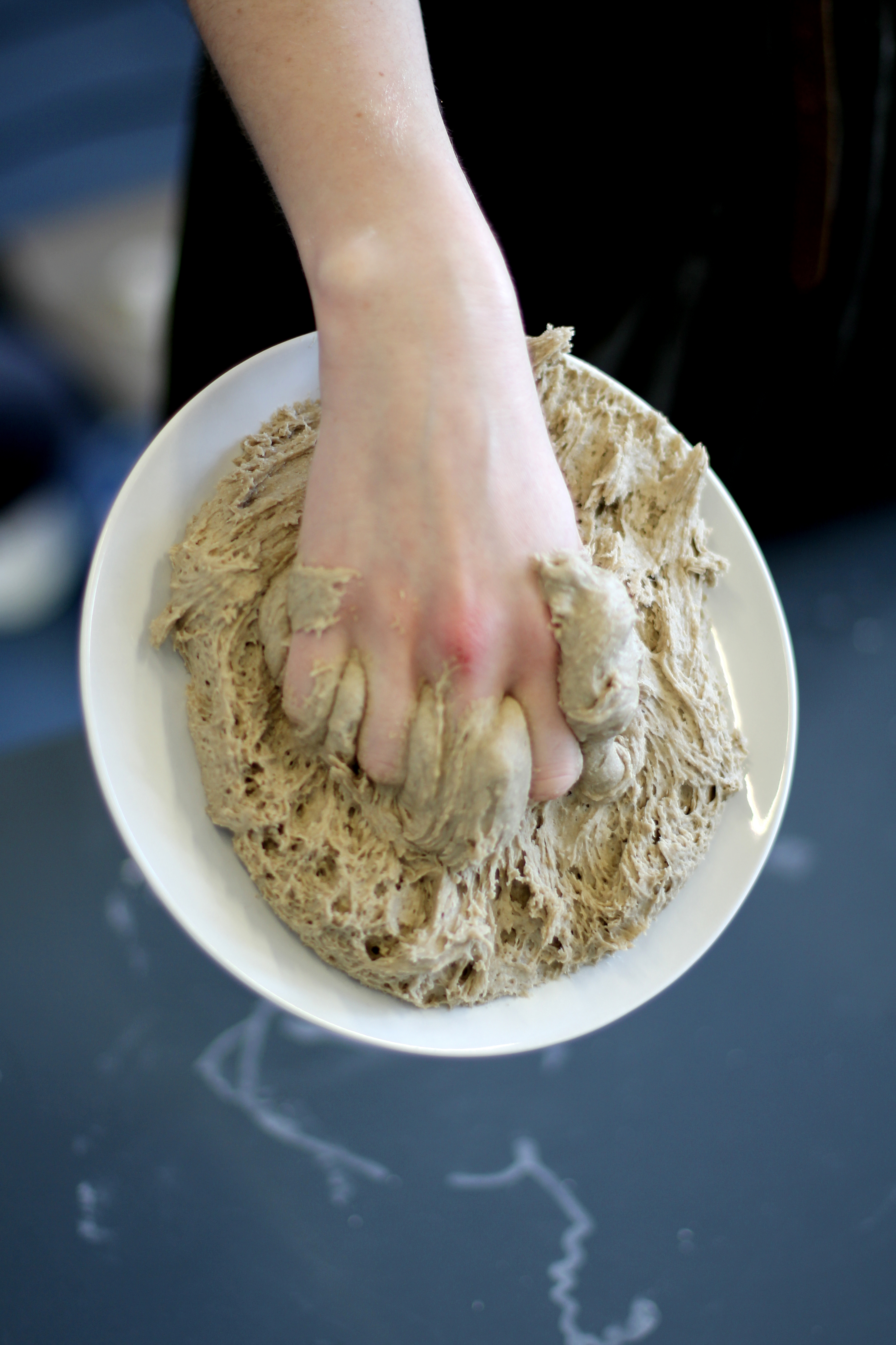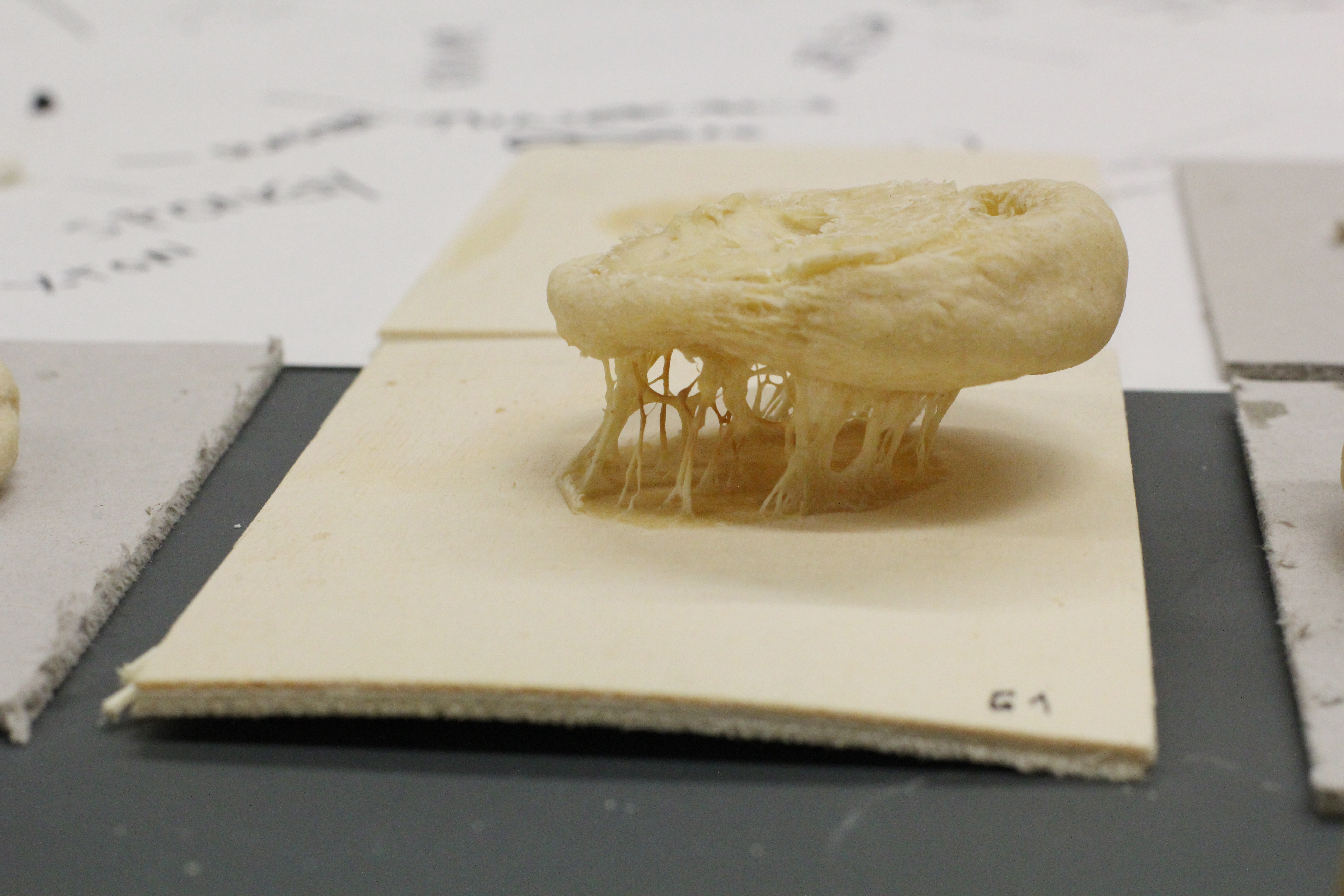 Die Teilnehmenden des Workshops verwendeten Mehl und Wasser zum experimentieren. Materialien, die auf den ersten Blick bekannt und simpel erscheinen, jedoch auf chemischer Basis ein komplexes reaktives Potenzial bieten. Durch intuitives Ausprobieren wurden Grundlagen des Experimentierens vermittelt und Fähigkeiten wie Neugierde, Beobachtungsgabe und Kreativität trainiert. Die Prozesse wurden so zur Projektionsfläche unterschiedlicher Expertisen der Beobachtenden.