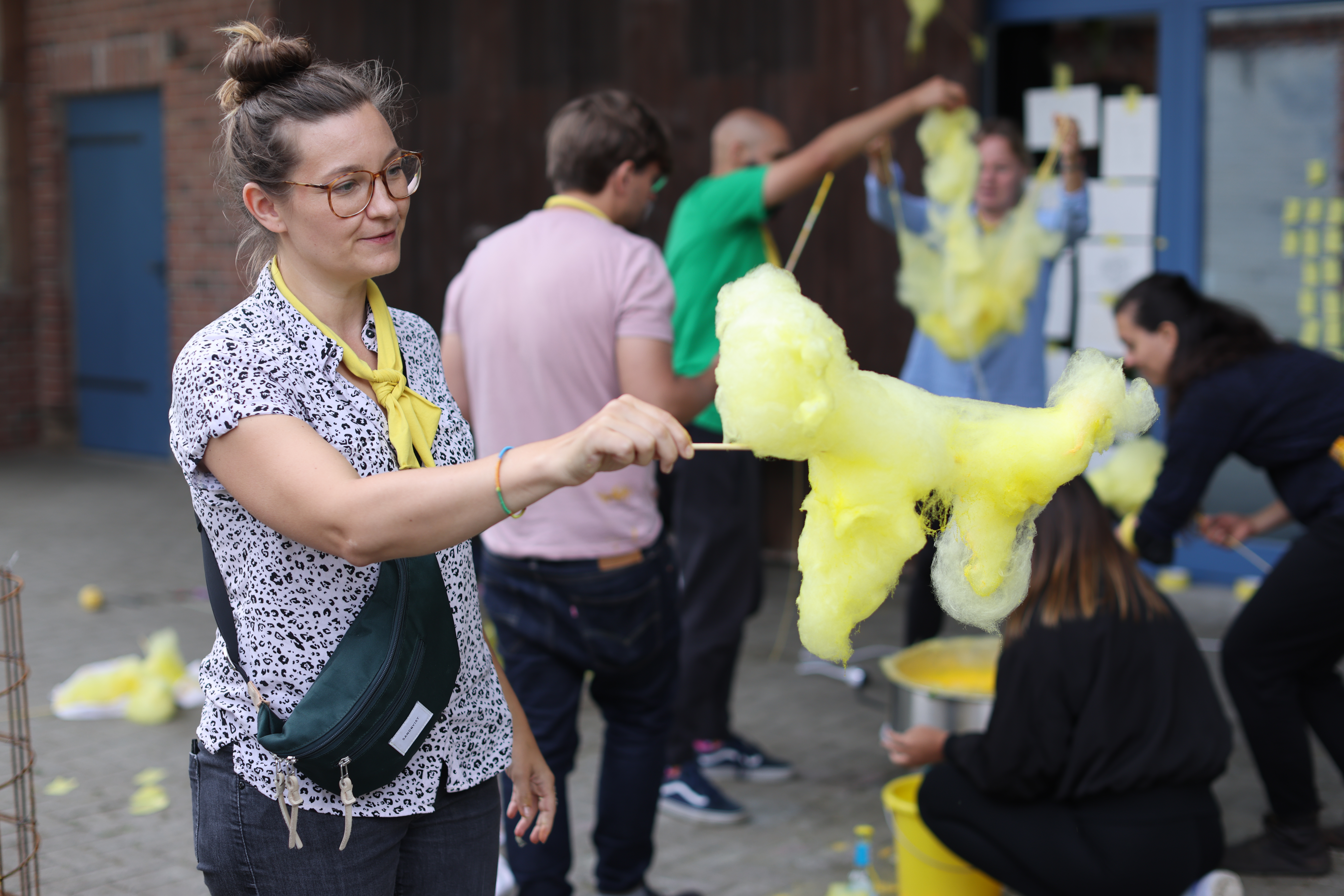 The Workshop was part of the annual summer festival of Design Agency Zentralnorden. It was intended to foster team building and individual development. Cotton candy was used, in order to learn about autonomous action and failure.