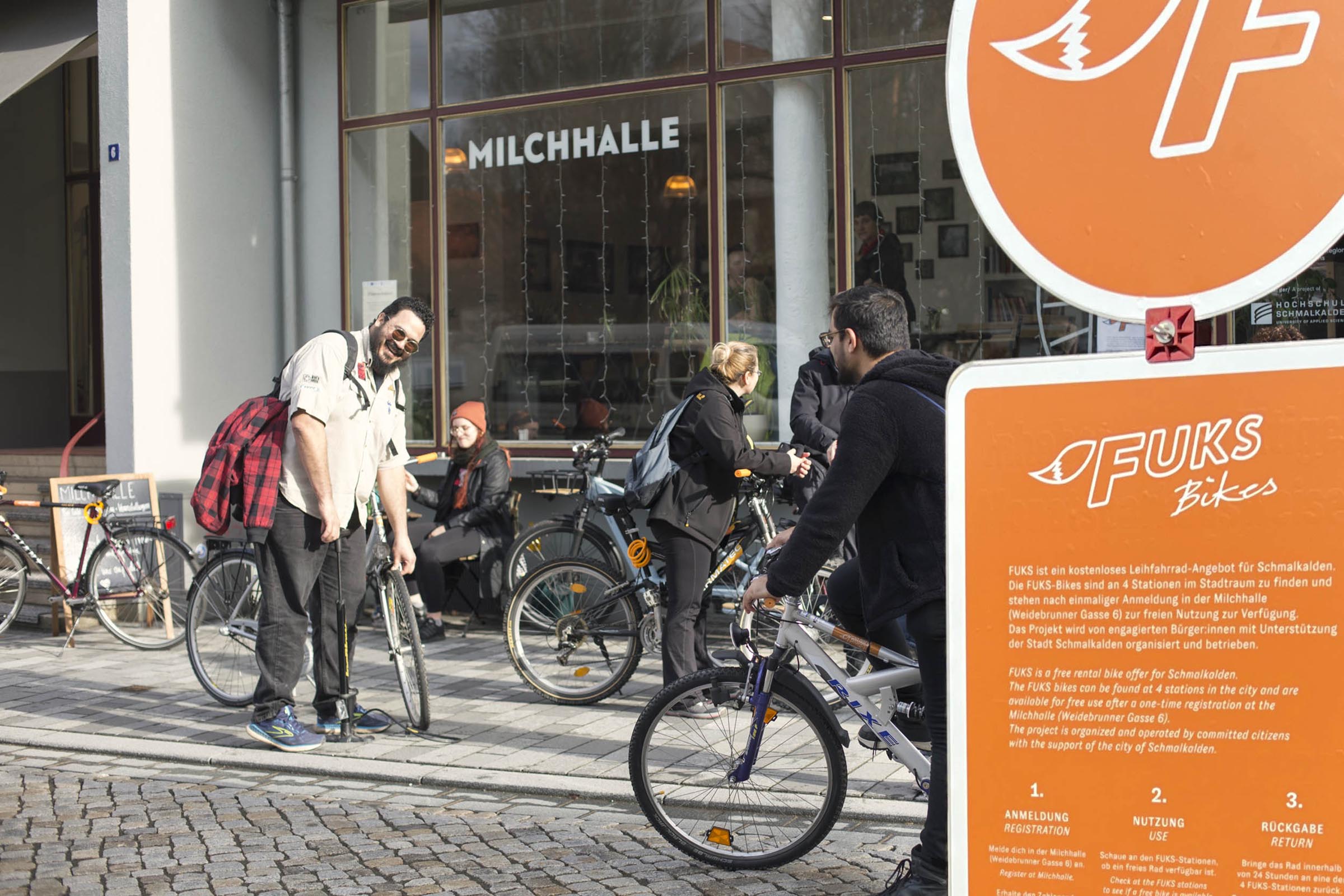 FUKS is a free bike rental service based on donated bicycles in Schmalkalden. FUKS bikes can be found at four stations throughout the city and are available for free use after a one-time registration at the Milchhalle. The project is organized and operated by committed citizens with the support of the city of Schmalkalden.