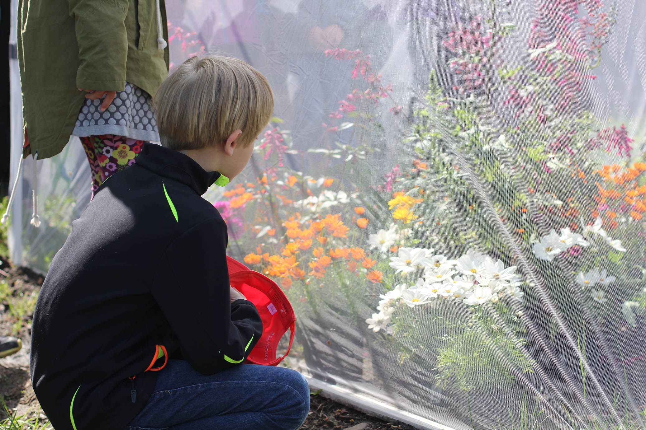 Netz mit Bestäuberhummeln und Pflanzen