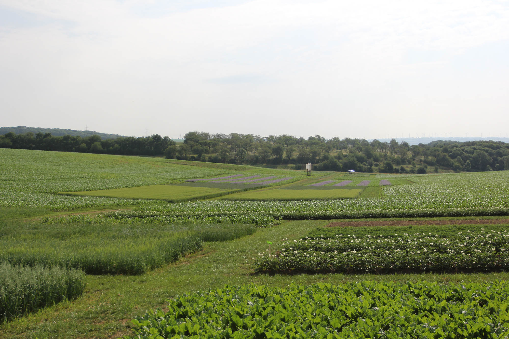 Für unseren Workshop zum Themenbereich Pflanzen und Landschaft waren wir zu Gast bei der Agrargesellschaft Pfiffelbach im Herzen des Thüringer Beckens. Wir hatten hier die großartige Möglichkeit, ein Musterfeld zu gestalten, auf dem alte und neue Kulturpflanzen sowie eine Vielfalt von Anbauweisen nebeneinander fußläufig erlebbar wurden. Das Musterfeld wurde im Rahmen von Workshops als Erfahrungsraum sowie zur Wissensvermittlung genutzt.