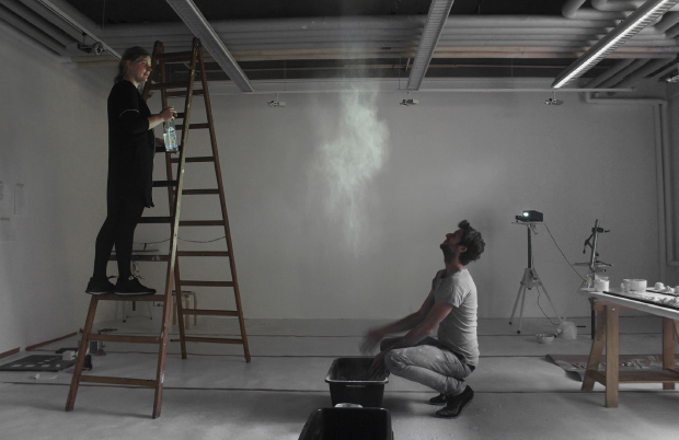 Participants used flour and water as given materials, that seem known and simple, but offer a complex reactive potential on a chemical basis. A core element of the research is the examination of the given material as matter and the variations of in-between states it can be transformed into.